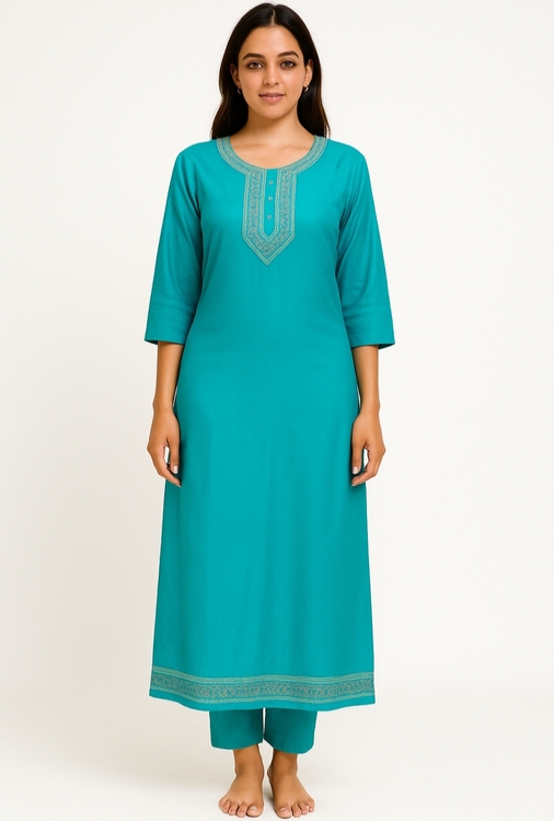 Step into elegance with this Vairaagee party & casual printed firozi / blue Kurta. Designed in vibrant firozi / blue hues with a touch of sophistication, this kurta blends comfort with fashion for your perfect everyday & festive look.
